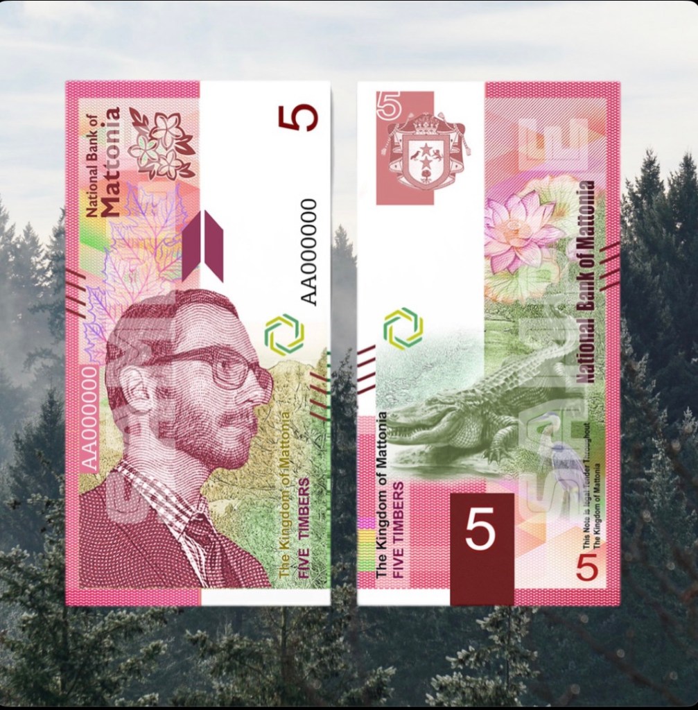 The Mattonian Timber will be pegged to the price of longleaf timber, reflecting Mattonia’s rich natural resources and commitment to sustainable economic practices. The new currency will feature four denominations: 1, 5, 10, and 20 Timber notes.