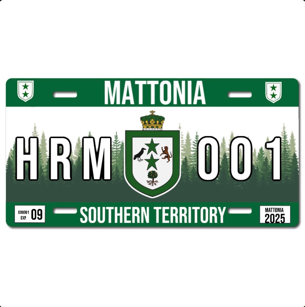 In a move that highlights the Kingdom of Mattonia’s commitment to Mattonian identity and environmental consciousness, King Joshua I has unveiled new license plates for the Southern Territory and the Rocky Mountain Territory.
