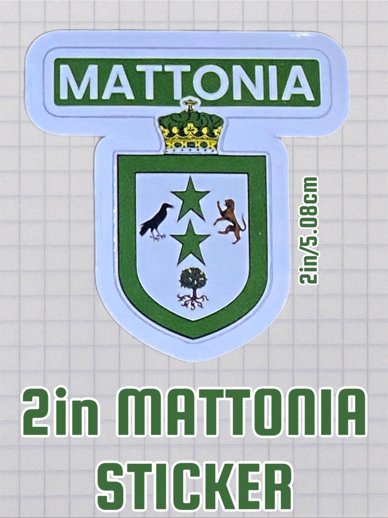 Show your Mattonian pride wherever you go! Our 2-inch stickers are a perfect way to express your allegiance and add a touch of Mattonian charm to your everyday items.